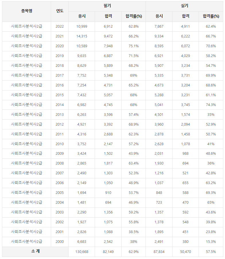 사회조사분석사 1급 자격요건 필기 실기 합격률조회 (2024)