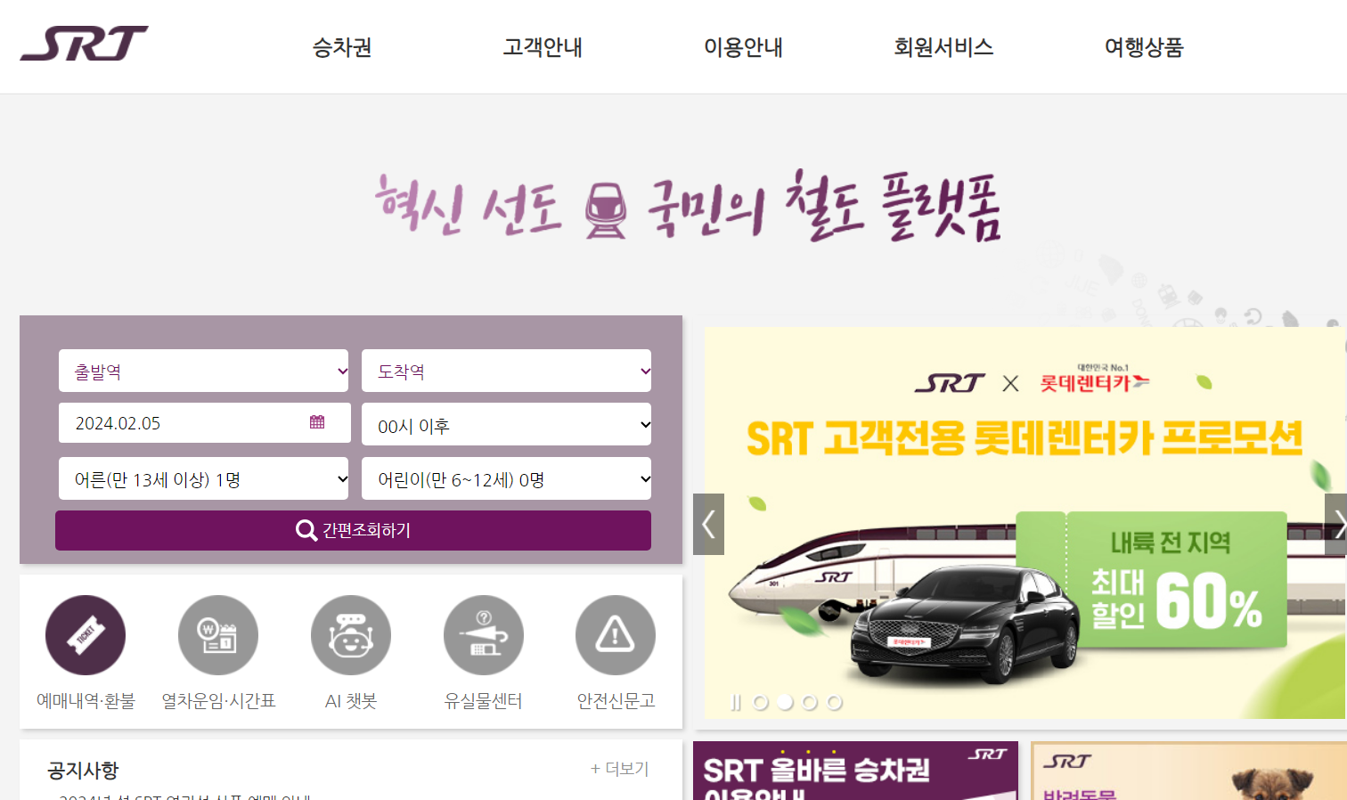 SRT 예매 홈페이지에 바로가기에 대해 알아보겠습니다. 특히 연휴를 맞아 예매하시는 분들이 더 많을것이라 예상되는데요, 아래에서 바로 한번 알아보도록 하겠습니다.