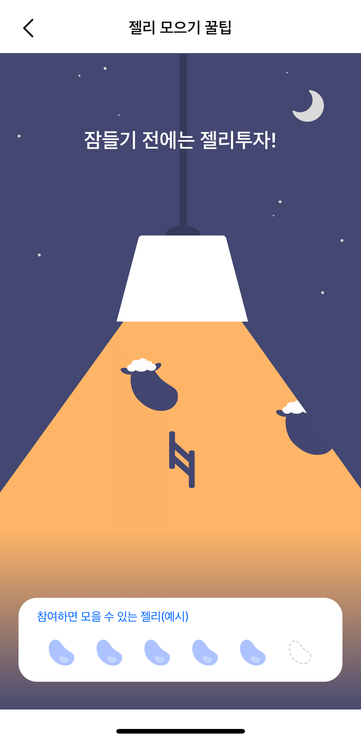 게다가 출석체크 뿐만 아니라 빙고게임, 걷기인증, 젤리투자 등을 통해서도 젤리를 추가로 얻을 수 있습니다.