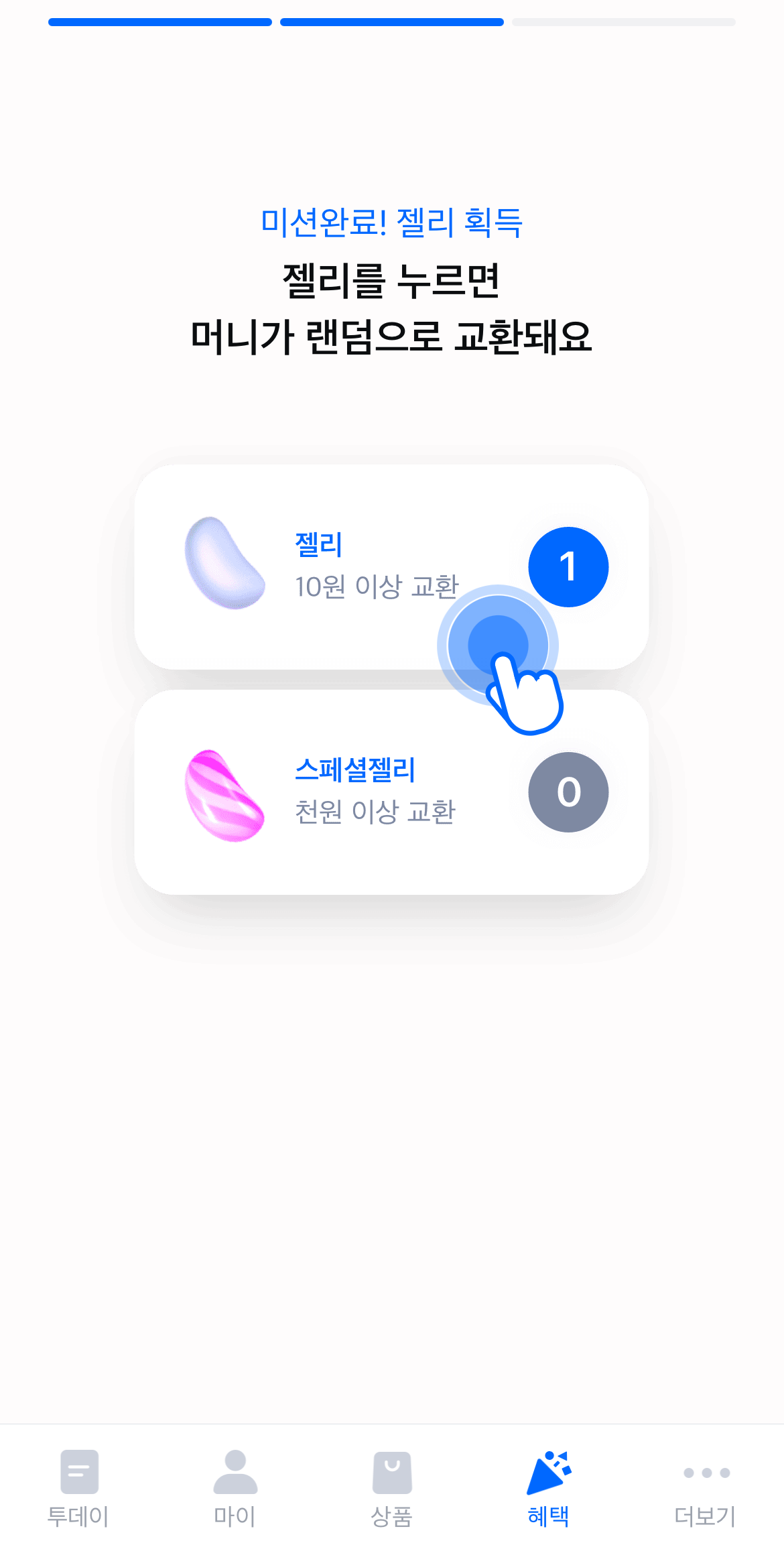 모니모 앱에 매일 출석체크를 하게 되면 젤리를 지급받게 됩니다.