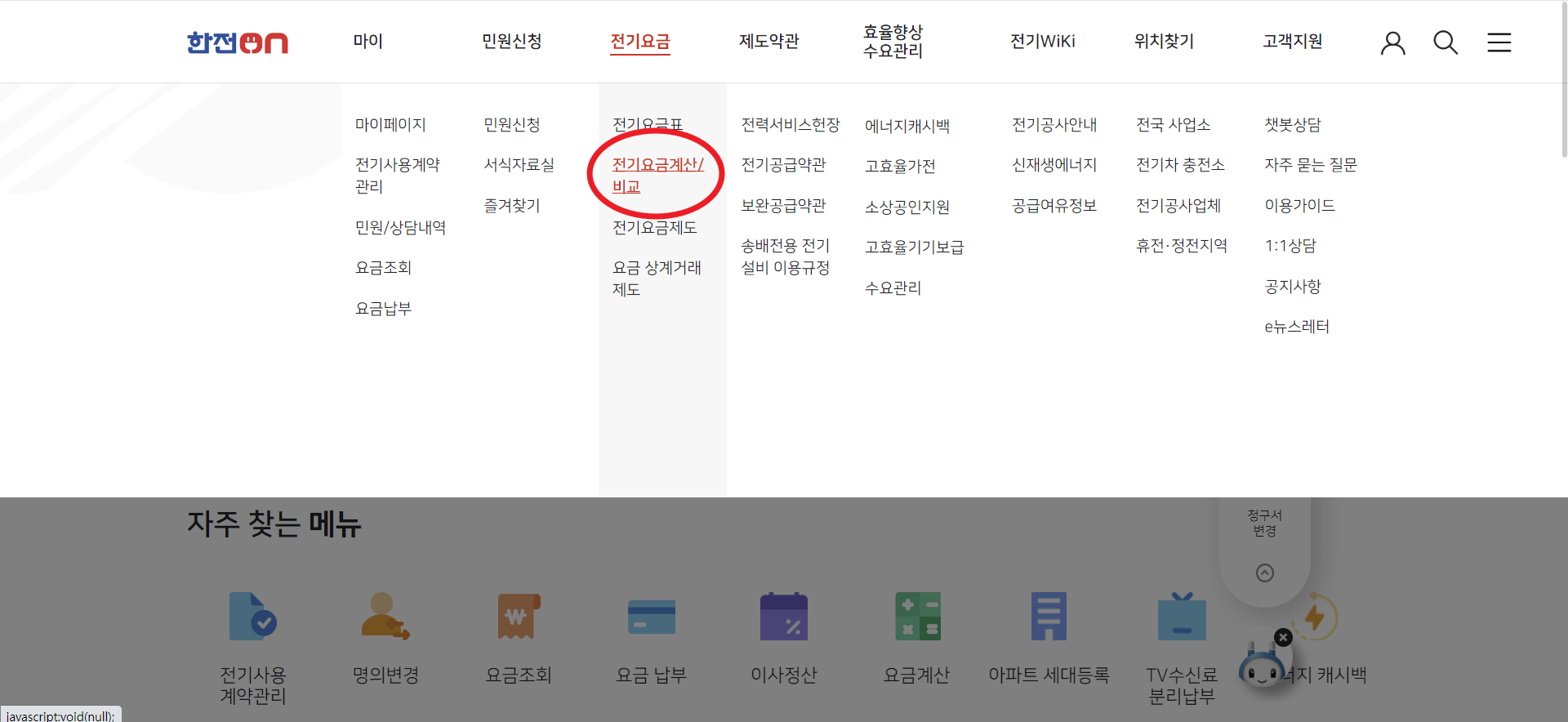 "전기요금 계산 / 비교" 에 들어가주세요.