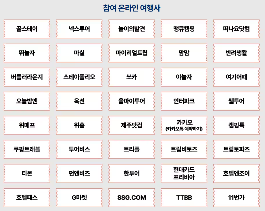 - 참여 온라인 여행사를 통한 할인권 발급 및 사용