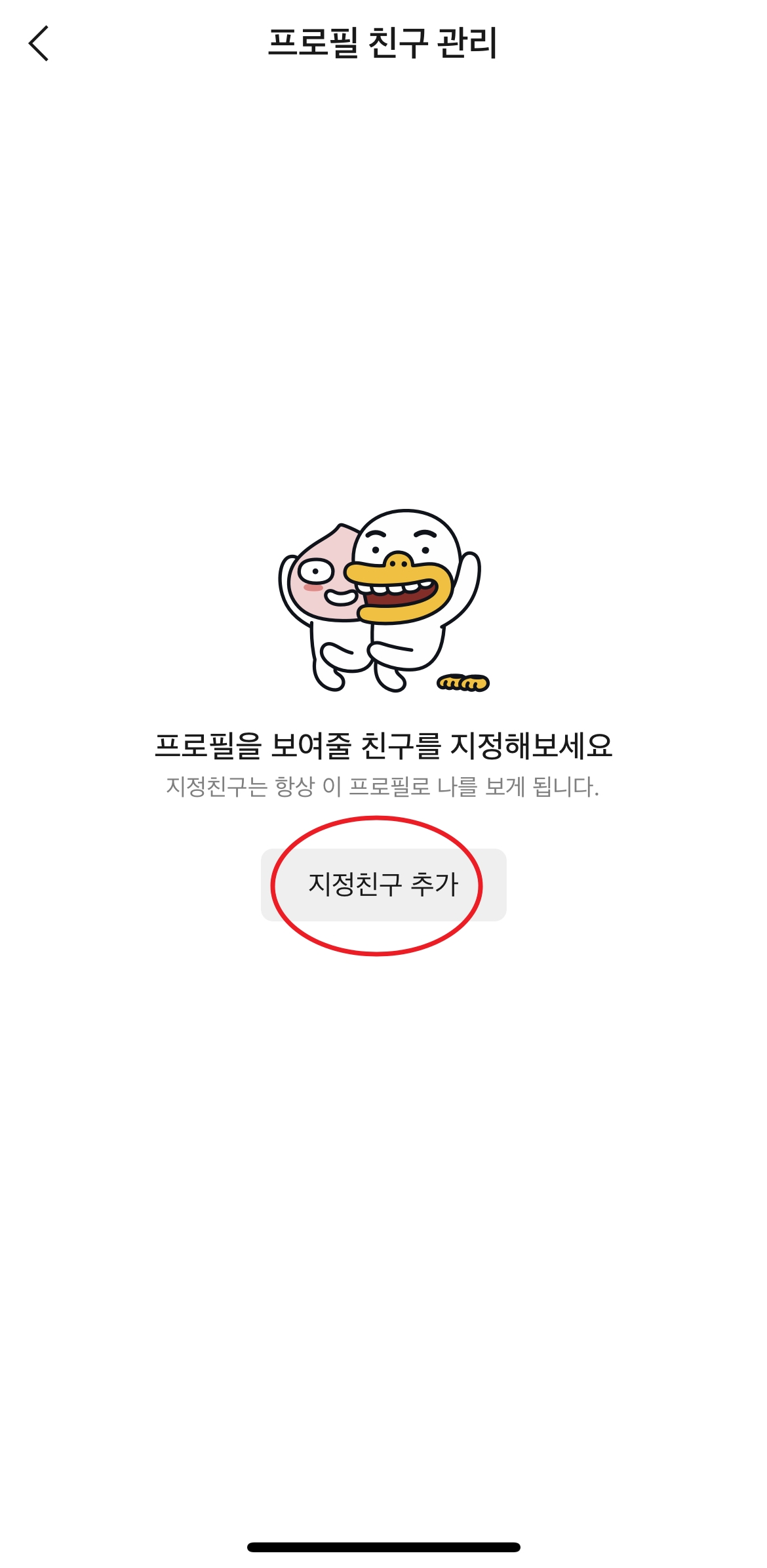 친구관리를 눌렀을때 나오는 화면입니다. 여기서 지정친구 추가를 해주시면 친구를 선택할 수 있는 창이 나옵니다.
