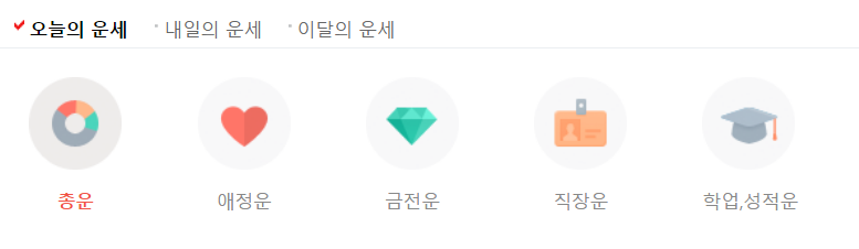 이렇게 총운, 애정운, 금전운, 직장운, 학업성적운까지 다양하게 볼 수 있습니다.