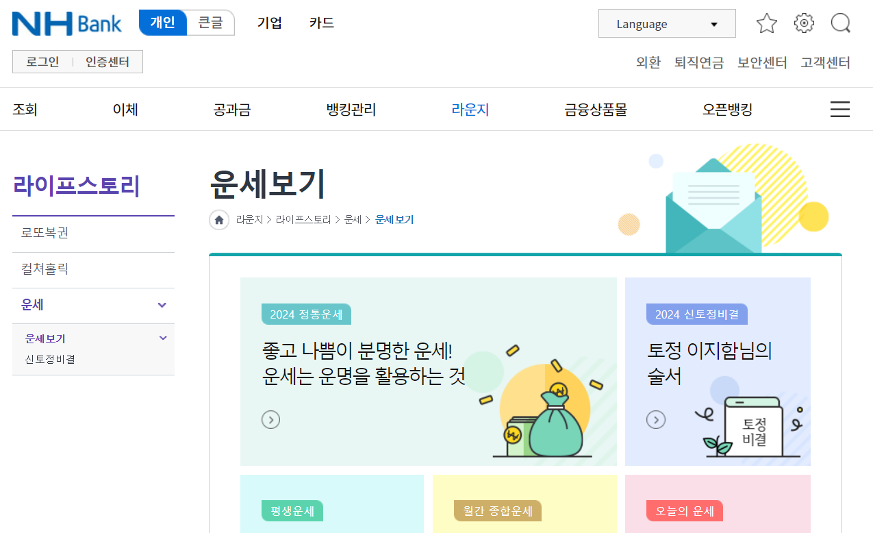 농협 새해운세에 대해 소개해드리겠습니다. 농협에서도 정말 다양한 컨텐츠를 제공하기 때문에 정말 추천하는 사이트 중 하나입니다.
