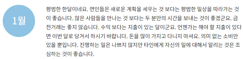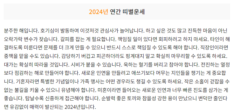이렇게 한 해의 운세를 한꺼번에 정리해줍니다.