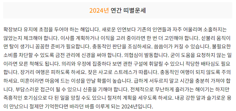 | 2024년 띠별 운세 말띠 (0) | 2023.12.03 |