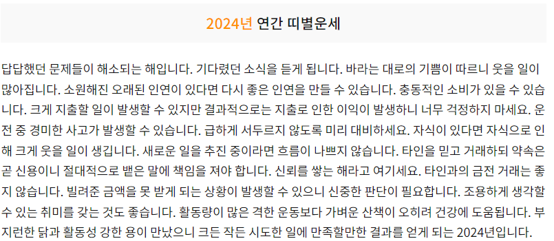 | 2024년 띠별 운세 말띠 (0) | 2023.12.03 |