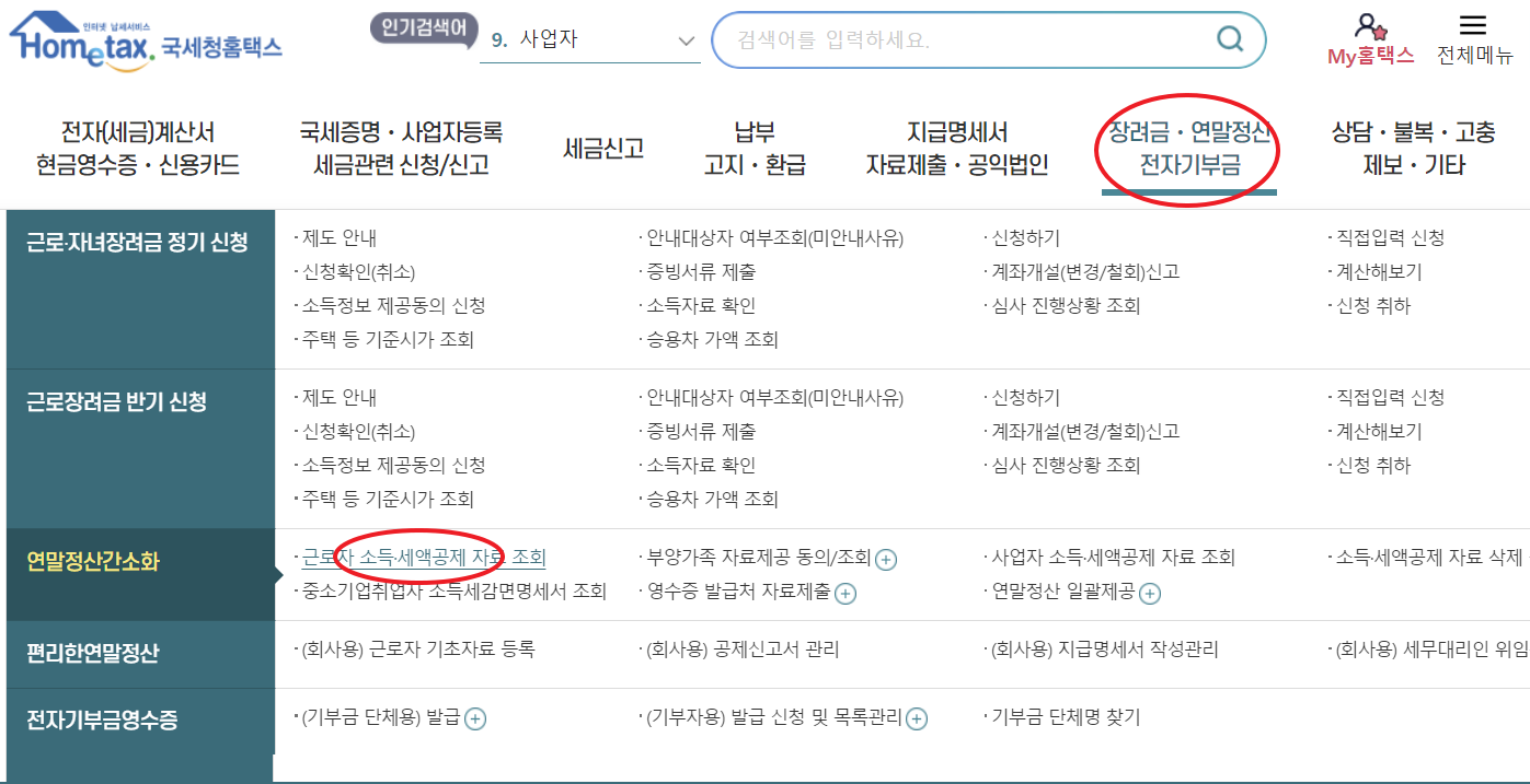 장려금 연말정산 전자기부금▶️ 연말정산 간소화 ▶️ 근로자 소득 세액공제 자료조회 에 접속해주세요.