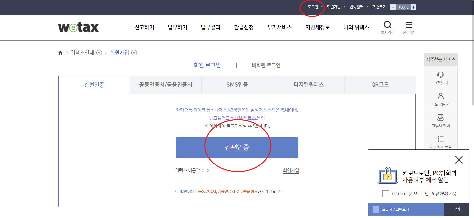 일단 위택스 홈페이지에 접속하여 원하시는 방법에 맞추어 로그인을 진행해줍니다.